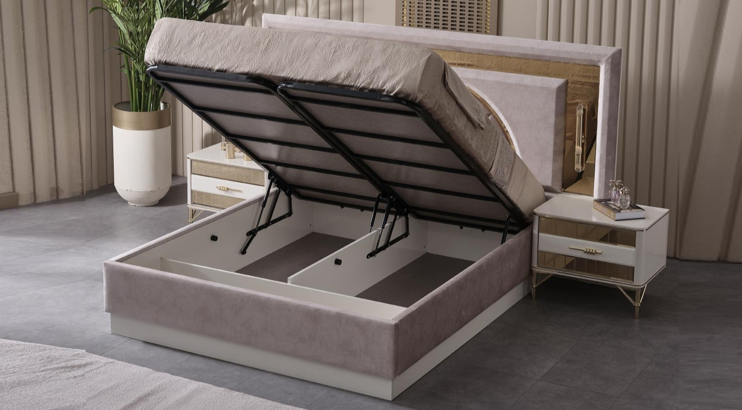 This opulent Aras bedroom set, is designed to bring a touch of grandeur and sophisticated functionality to your sleeping space.