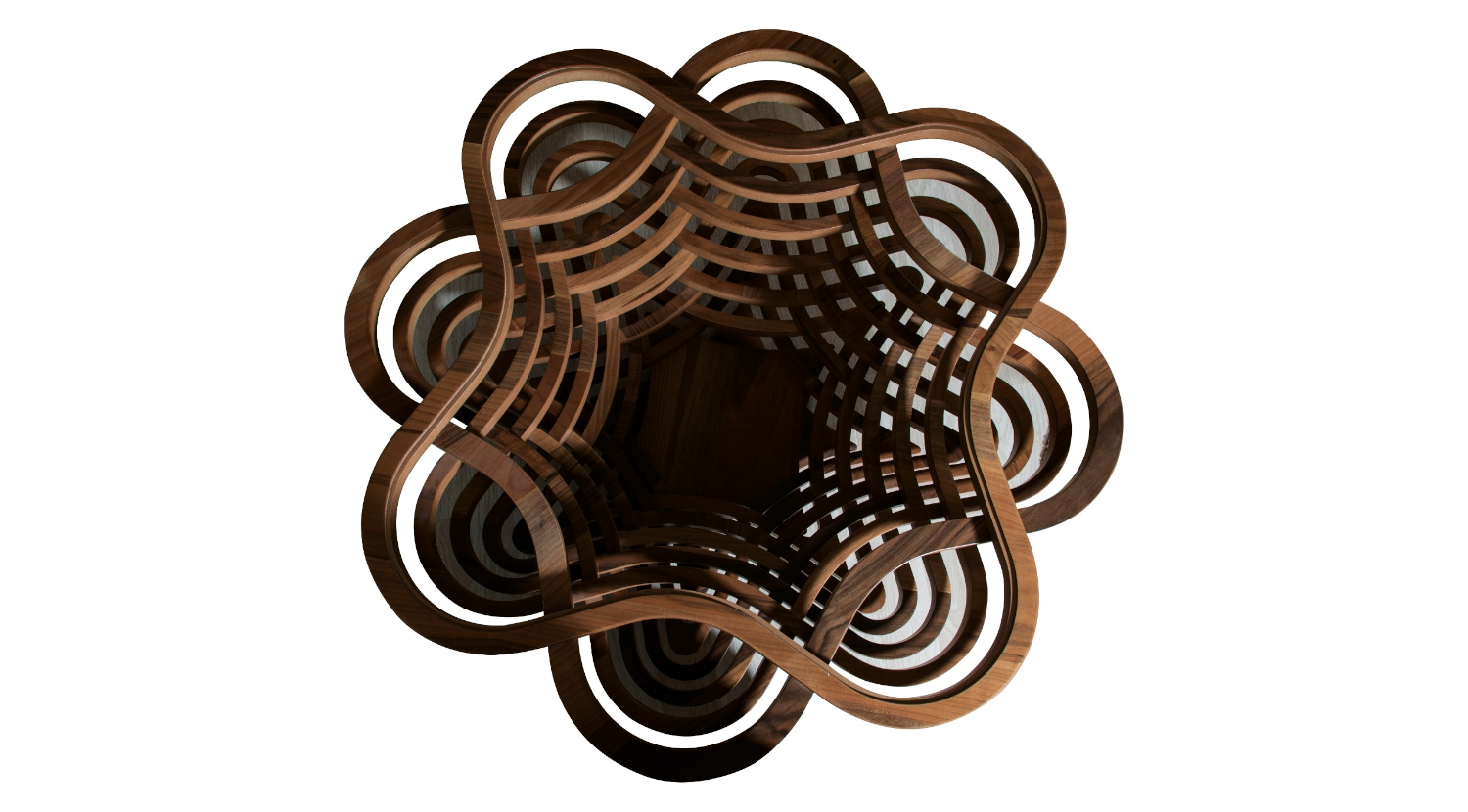 The Bulut Center Table is an exceptionally artistic and abstract piece, designed to serve as a captivating focal point in any contemporary living space. Viewed from above, it reveals a complex, multi-layered structure crafted from warm-toned wood. The table’s design consists of numerous, interconnected, and seemingly floating concentric rings or wavy bands that create a visually dynamic and intricate pattern. These elements are arranged to form an open, undulating form, resembling an organic shape or an artistic interpretation of clouds. The varying depths and interplay of light and shadow within its layered construction make the Bulut Center Table a truly unique and sculptural addition, blurring the line between furniture and art.