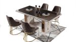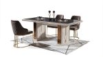 The Aras Dining Set is characterized by its opulent gold accents, rich textures, and clean lines, making it an ideal choice for those who appreciate refined design and desire a dining area that makes a statement.
