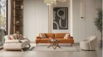 The ALP Sofa Set in 3+3+1+1 configuration is a beautifully crafted modern living room ensemble that exudes elegance and warmth.